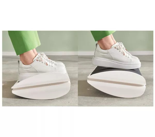 With two simple height settings—78 mm and 128 mm—you can tailor the foot rest to suit your individual sitting position. Flip it to switch between the flat and curved surfaces, both of which feature a non-slip texture to keep your feet secure. The curved platform supports natural rocking, keeping your legs in motion and reducing the fatigue caused by sitting still for hours.